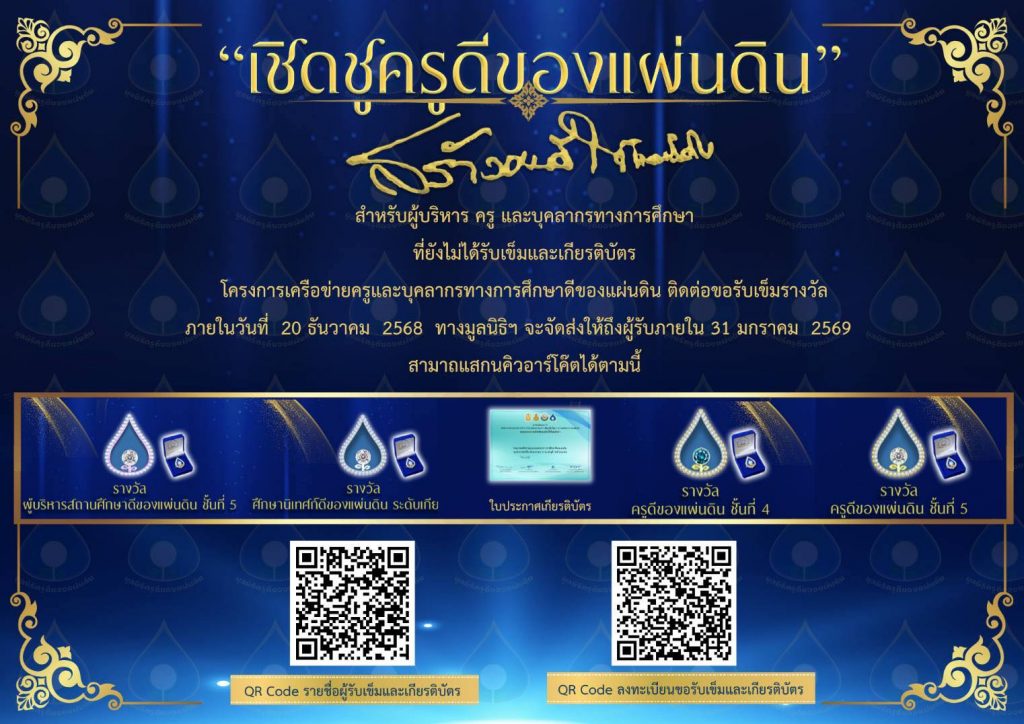 สำหรับท่านที่ยังไม่ได้รับ เข็มและเกียรติบัตร 🏅 จาก “โครงการเครือข่ายครูและบุคลากรทางการศึกษาดีของแผ่นดิน”
