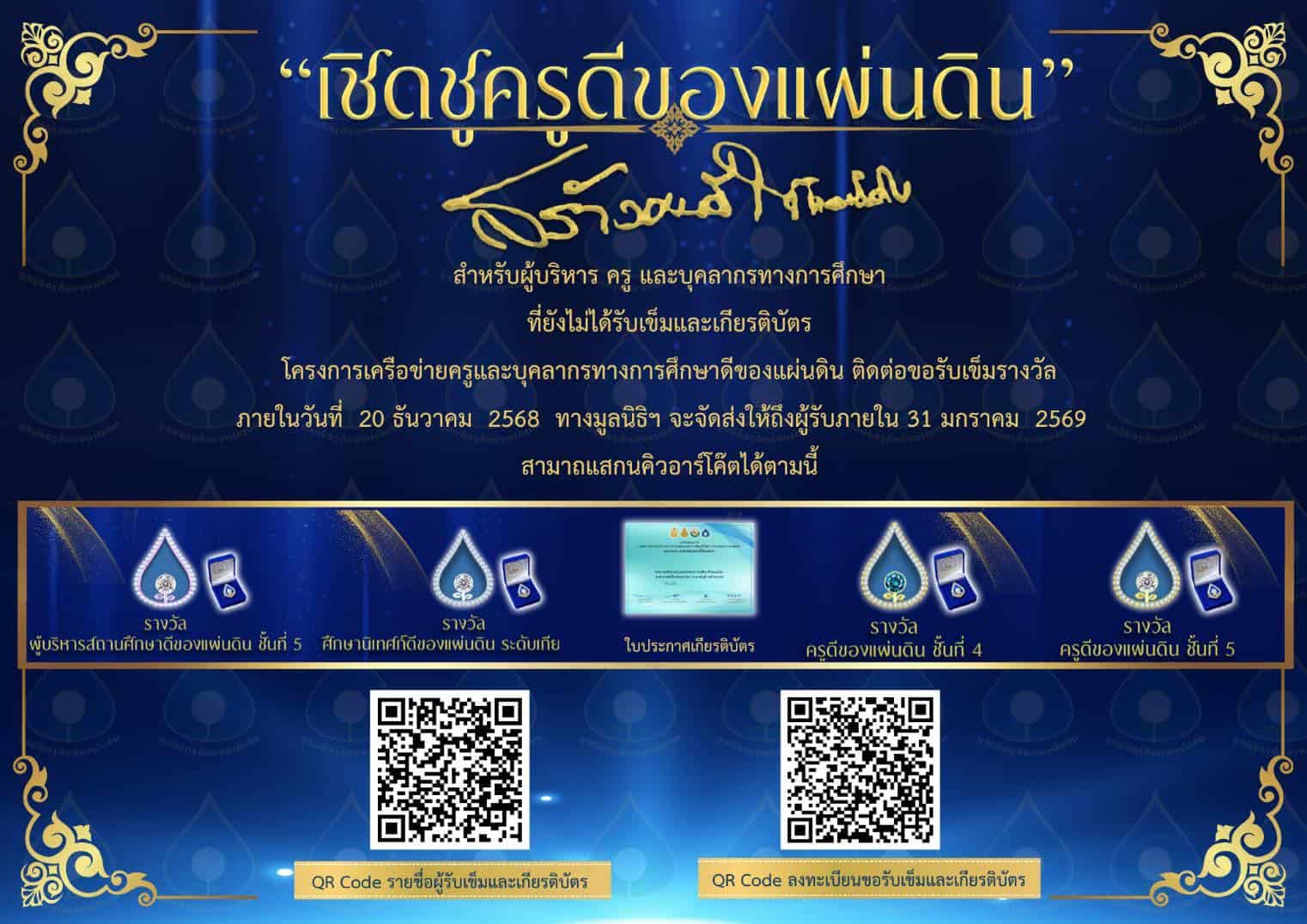สำหรับท่านที่ยังไม่ได้รับ เข็มและเกียรติบัตร 🏅 จาก “โครงการเครือข่ายครูและบุคลากรทางการศึกษาดีของแผ่นดิน” 🚩 …